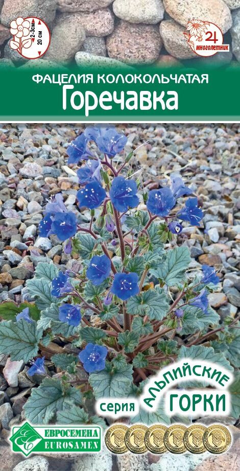 Фацелия колокольчатая - красивоцветущее растение, представительница рода Фацелия и семейства Водолистниковые, Родиной которой принято считать Южную Калифорнию. Растение применяется активно цветоводами из России и европейских стран для украшения личных приусадебных участков. Цветы фацелии колокольчатой напоминают по форме настоящий колокольчик, они почти миниатюрные, 2-3 см в диаметре. На каждом растении одновременно образуется несколько цветоносов, поэтому фацелия смотрится пушистым цветком. Тычинки цветка длинные, белого цвета, и это сочетание придаёт растению нарядность, яркость и объёмность одновременно. Красивый, насыщенный сине-кобальтовый цвет фацелии колокольчиковой поражает красотой. Горечавка- миниатюрная и изысканная фацелия, формирующая рыхлый кустик с обилием побегов и интересной, весьма декоративной листвой серовато-зеленого цвета, по кромке которой имеется красноватая окантовка и зазубринки. Растение зацветает в конце июня и продолжается в течение 2-х месяцев.