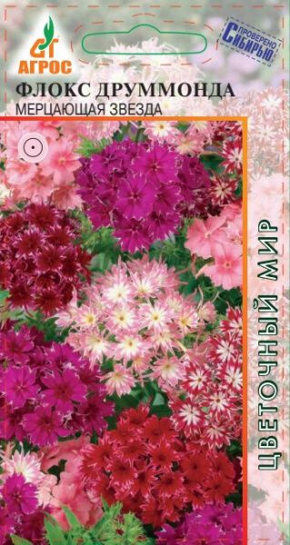 Однолетнее растение. Кустики компактные, низкие, 30 см высотой. Плотные яркие соцветия с остроконечными лепестками достигают в диаметре 10 см. Цветки с легким ароматом собраны в щитковые соцветия. Растения однородны по размерам и срокам цветения, имеют сильную корневую систему. Флокс холодостоек, светолюбив и засухоустойчив. Может выносить полутень, хотя при этом теряет компактность. В сухую погоду нуждается в поливе. К почвам нетребователен. Для более длительного цветения желательно удалять отцветшие соцветия. До цветения подкармливать комплексным минеральным удобрением (раз в 10-14 дней). Семена на рассаду высевают в марте-апреле. При температуре 18-20°С, всходы появляются через 8-12 дней. Можно сеять в открытый грунт под зиму. Флокс чаще всего используют для создания бордюров вокруг цветников и вдоль дорожек, а также они хороши в контейнерах, в балконных ящиках и в горшечной культуре. 30 III-IV X V-VI 10-20 VI-IX