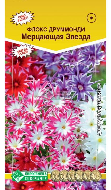 Флокс Друммонда – однолетник с периодом цветения более 3 месяцев, поэтому и приобрел такую популярность среди цветоводов, а само его выращивание доступно любому владельцу загородного дома, дачи или усадьбы. Растение представляет собой небольшой, но пышный кустик, который покрыт плотно расположенными цветами. Оно характеризуется более длительным периодом и обильностью цветения, никогда не перестают удивлять и восхищать своей цветовой окраской. Мерцающая Звезда-восхитительная смесь душистого игольчатого флокса. Совершенно уникальна форма цветков, ей нет аналога. Звездчатые, яркие цветки собраны в широкие, кистевидные соцветия. Долго и обильно цветет. Наиболее декоративно смотрится на умеренно влажных, питательных почвах и солнечных местах. Отличный почвопокровник. В тени растет плохо. Рекомендуется для клумб, вазонов и каменистых горок.