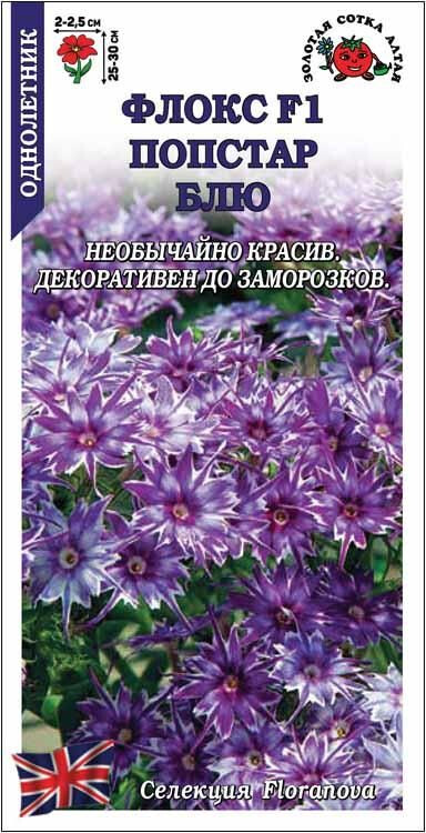Необычайно красивый гибридный флокс серии Popstars. Цветет обильно и длительно, сохраняя декоративность до заморозков. Растения генетически компактные, отлично ветвятся от самого основания. Многочисленные цветочки-звездочки уникальной сиренево-голубой окраски с белыми кончиками собраны в крупные эффектные соцветия. Флоксы данной серии великолепно развиваются в горшках и ящиках, используются в любых цветниках.