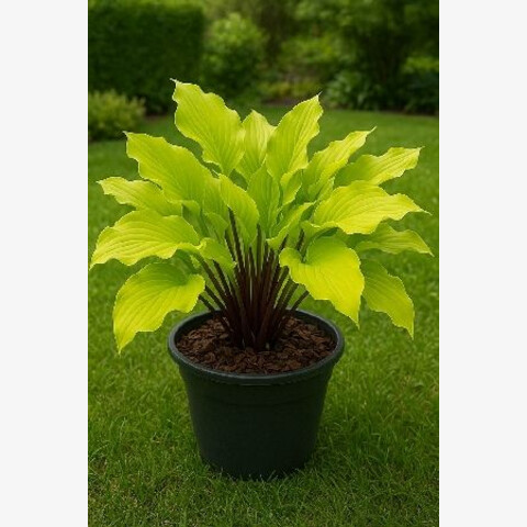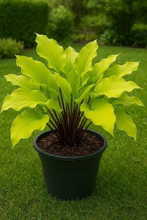 • зеленый, с золотисто-желтыми краями, на фиолетово-красноватых черешках. Н-35-40см, Ø 50см