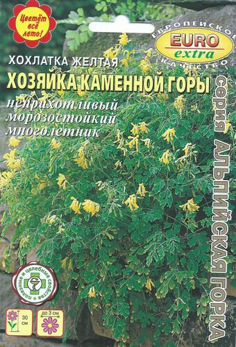 Очень неприхотливое, образующее многолетний кустарник, растение высотой до 30 см. Обычно используется ка украшения альпийских горок. Длинные трубчатые цветки длинной до 2,5-3 см, ярко-желтого цвета, собраны в кистевые соцветия. Хохлатка не создаст особых проблем при выращиваниии - она морозоустойчива, не подвержена большинству болезней, не поражается вредителями. При этом она рано зацветает, отличается целебными свойствами и яявляется отличным медоносом.