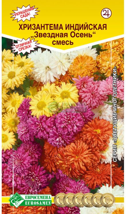 Хризантема индийская отличается красивыми соцветиями и многочисленностью сортов. Растение многолетнее, в естественных условиях его можно встретить на территории Индии, Ближнего Востока и Кавказа, в Европе она мало распространена. У растения имеются два вида побегов – они могут быть как прямые, так и стелющиеся. Кусты хризантем Звездная Осень – достаточно компактные, это лучшее украшение сада на финише сезона. Яркие махровые соцветия-корзинки в изобилии появляются с августа до устойчивых осенних заморозков. Кусты прочные, ветвистые, с множеством цветоносов. Хризантемы холодостойкие, засухоустойчивые, требуют солнечного расположения и хорошо дренированных почв, растут быстро. Используются в сборных цветниках, рабатках, для выращивания в контейнерах. Отлично подходят для срезки.