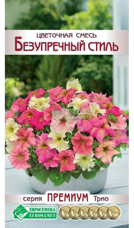 Петуния – роскошная культура, которую дизайнеры часто используют при оформлении ландшафта и для создания гармоничных композиций применяют сочетания разных оттенков и форм, чтобы растения в течение лета радовали владельцев обильным цветением. Она способна кардинально преобразить наскучившее оформление. Петуния имеет долгий период цветения и огромное количество форм, видов и расцветок. Посадив ее, легко можно облагородить пространство загородного дома, сада или парка, она стала ежегодной гостьей в нашей жизни. Никакое другое растение в такой степени, как петуния, не подходит для оформления комфортных и романтических уголков отдыха, не боясь при этом ни дождя, ни ветра, ни жары, стойко выдерживает любую непогоду. Ухаживать за растением несложно, отсюда и ее популярность среди цветоводов. Безупречный Стиль- смесь, идеально подобранная в своем цветовом сочетании, позволит в вечерние часы насладиться замечательным запахом восхитительных и нежных цветков.