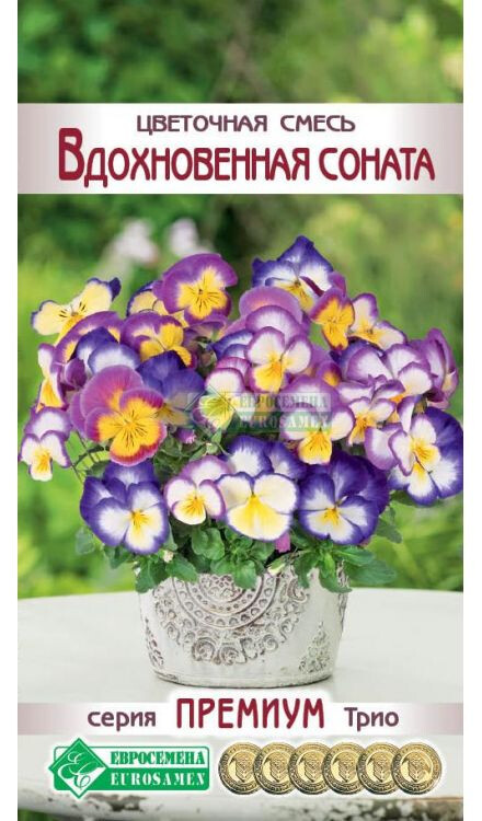 Среди огромного числа декоративных культур, пользующихся заслуженной популярностью, особое место занимает виола, эффектные сорта которой украшают проспекты и придомовые территории, сады и парки, балконы и лоджии, террасы и веранды, площади и бульвары. Эстетичный внешний вид, длительный период цветения, прекрасная приспособляемость к неблагоприятным факторам внешней среды и простота в уходе имеют первостепенное значение для любого цветовода. Садоводы украшают ими свои дачи, а некоторые виды выращивают из-за их нежного аромата. Много лет назад европейские народы полюбили этот нежный цветок и украшали им свои праздники, нарядную одежду, плели венки и гирлянды. Вдохновенная Соната- жизнерадостная смесь виолы с яркой, контрастной окраской пикоти, которая понравится не только взрослым, но и детям. Цветки шелковистые, искрящиеся, единственные в своем роде, от них невозможно оторвать взгляд, они необыкновенно красивы и привлекательны.
