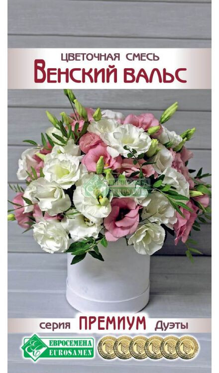 (Смесь состоит из: Lisianthus grandiflorum Super Magic F1 Green & Rose) Лизиантус (Эустома)-невероятно красивое растение, в последние годы переживает второе рождение и пользуется повышенным вниманием у любителей-цветоводов многих стран из-за своих необыкновенно ярких и выразительных цветков, напоминающих по форме крупные воронкообразные чашечки. Внешний вид кустиков, их цветы неописуемой красоты и изящества, не оставят никого равнодушными. В период с августа по сентябрь она затмевает саму королеву цветов- Розу! Эустома способна радовать всех своим цветением как минимум дважды в год, эта прекрасная розочка любви и нежности, несомненно, украсит наши с Вами дома наряду с другими очаровательными цветами. Высокий устойчивый стебель, похожий на стебель гвоздики, усыпан зелеными листьями с голубоватым оттенком и легким восковым налетом на них. Где-то с середины кустов, стебель начинает разветвляться, и во время цветения похож на необыкновенно-красивый букет из 30-35 бутонов, раскрывающихся один за другим. Цветы долго держатся на стебле, восхищает удивительная стойкость букетов в вазе. Невозможно перечислить все цвета, которыми природа щедро наградила этот необыкновенный цветок!