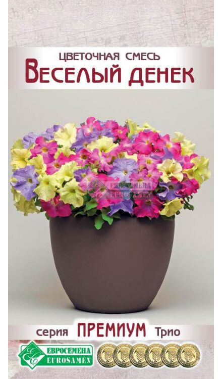 Petunia grandiflora F1 Dreams Sky Blue & Petunia grandiflora F1 Dreams Rose Morn & Petunia grandiflora F1 Sophistica Lime Green Сегодня петуния стала украшением клуб, рабаток, окон, балконов, вазонов, цветников, бордюров – где только ее не встретишь! Роскошные каскады цветов радуют нас с наступления лета до самых холодов. Щедрое цветение, фантастическое сочетание окрасок цветков создают нарядную, праздничную атмосферу, а контрастные расцветки придают цветкам некую торжественность. Это просто удивительно. Смесь создает ощущение, будто она полностью состоит только из восхитительных цветков. Цветки различного размера, но все они гармоничны и прекрасны. Никакое другое растение в такой степени, как петуния, не подходит для оформления комфортных и романтических уголков отдыха, не боясь при этом ни дождя, ни ветра, ни жары, стойко выдерживает любую непогоду. Ухаживать за растением несложно, отсюда и ее популярность среди цветоводов. В современном ландшафте это одна из самых популярных цветочных культур, прекрасный неприхотливый цветок с тонким ароматом. Огромное многообразие расцветок и разновидностей позволяет создавать красивые цветовые комбинации из этой культуры. Веселый Денек-впечатляющее трио обильно цветущих петуний для всех видов озеленения!