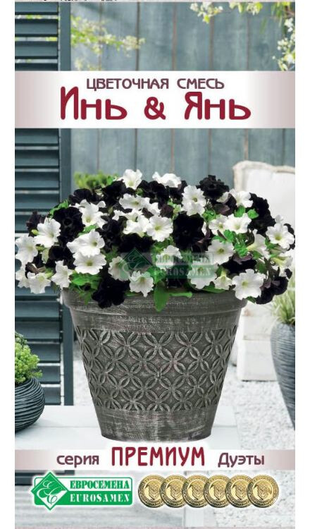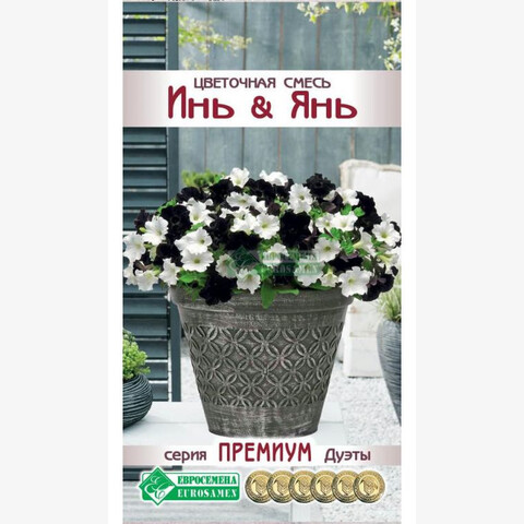 Петуния – роскошная культура, которую дизайнеры часто используют при оформлении ландшафта и для создания гармоничных композиций применяют сочетания разных оттенков и форм, чтобы растения в течение лета радовали владельцев обильным цветением. Она способна кардинально преобразить наскучившее оформление. Петуния имеет долгий период цветения и огромное количество форм, видов и расцветок. Посадив ее, легко можно облагородить пространство загородного дома, сада или парка, она стала ежегодной гостьей в нашей жизни. Никакое другое растение в такой степени, как петуния, не подходит для оформления комфортных и романтических уголков отдыха, не боясь при этом ни дождя, ни ветра, ни жары, стойко выдерживает любую непогоду. Ухаживать за растением несложно, отсюда и ее популярность среди цветоводов. Инь & Янь- смесь, идеально подобранная в своем цветовом сочетании, позволит в вечерние часы насладиться замечательным запахом восхитительных цветков.