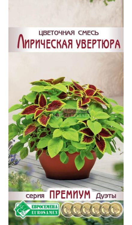 Coleus Premium Sun Crimson Gold & Coleus Wizard Golden Лирическая Увертюра - уникальная смесь колеуса- настоящего кружева тропиков! Рожденный в тропических лесах он полюбился европейским цветоводам насыщенной окраской листьев. Декоративность растения и непритязательность к условиям содержания сделали его желанным украшением в создании абсолютно любых цветников. Видов и сортов колеуса так много, что выбрать какое-то одно растение бывает непросто. Не каждый цветок сможет конкурировать по красоте с этим растением. Невероятно яркие, попугайные расцветки, бархатная фактура и разнообразная форма листьев воспринимаются с неизменным восхищением. Сочетания цветов на пестро окрашенных листьях, роскошных и бархатистых, поражают воображение и позволяют создавать яркие композиции на любой вкус. Быстро растущая крапивка чудесно формирует нижний ярус клумб, хорошо смотрится в контейнерных композициях с другими растениями, в группах, на клумбах, в бордюрах, массивами на рабатках. Растение любит обилие солнечных лучей и тепла, в ответ будет радовать своими яркими цветами.