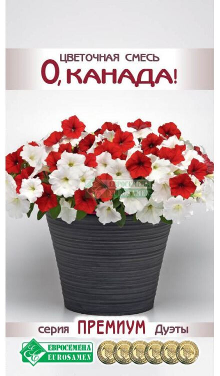 Петуния – роскошная культура, которую дизайнеры часто используют при оформлении ландшафта и для создания гармоничных композиций применяют сочетания разных оттенков и форм, чтобы растения в течение лета радовали владельцев обильным цветением. Она способна кардинально преобразить наскучившее оформление. Петуния имеет долгий период цветения и огромное количество форм, видов и расцветок. Посадив ее, легко можно облагородить пространство загородного дома, сада или парка, она стала ежегодной гостьей в нашей жизни. Никакое другое растение в такой степени, как петуния, не подходит для оформления комфортных и романтических уголков отдыха, не боясь при этом ни дождя, ни ветра, ни жары, стойко выдерживает любую непогоду. Ухаживать за растением несложно, отсюда и ее популярность среди цветоводов. О, Канада!- смесь, идеально подобранная в своем цветовом сочетании, позволит в вечерние часы насладиться замечательным запахом восхитительных цветков.
