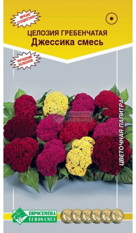 Латинское название Celosia происходит от греческого слова Kelos (пылающий, пламенный, горящий), оно связано с яркой окраской и соцветий, и листьев. Джессика отличается огромными яркими соцветиями, компактным габитусом растений с прочными цветоносами и обильным листовым аппаратом. Оригинальное растение никого не оставит равнодушным, благодаря своим ярким плотным соцветиям, напоминающим петушиный гребень. Очень декоративное и неприхотливое это растение станет настоящим украшением клумб и рабаток. С успехом использоваться может в качестве декоративной садовой культуры, а также как сухоцвет в букетах. Зимой Вы сможете наслаждаться оригинальными цветочными композициями, созданными собственными руками. Срезанные и заботливо высушенные соцветия прекрасно сохранят окраску, которая была во время цветения, до весны. Высота растения-15-20 см