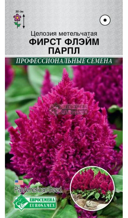 Celosia plumosa First Flame Purple Латинское название Celosia происходит от греческого слова Kelos (пылающий, пламенный, горящий), оно связано с яркой окраской и соцветий, и листьев, является однолетним, травянистым, декоративным растением, относящимся к амарантовым. Целозия First Flame® отличается более ранним цветением, по сравнению с конкурирующими сортами на 10-14 дней. Растения компактные, выровненные, ветвистые с продолжительным цветением. Яркость окраски соцветий не изменяется при высоком уровне освещенности. Этот цветок отличается скромным изяществом и простотой форм соцветий, но это не делает его незаметным или неуместным в ландшафтных композициях на приусадебном участке и в городском озеленении. Равномерный рост и цветение делают серию универсальной в озеленении различных клумб и цветников открытого грунта, прекрасно смотрится в вазонах и контейнерах, напольных вазонах.