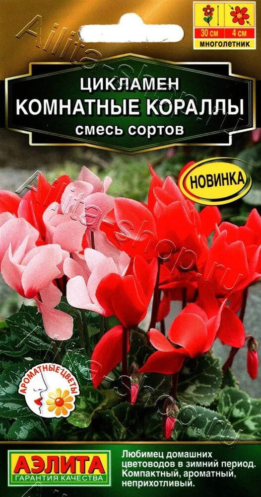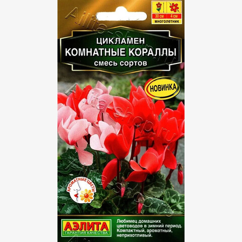 Очаровательная смесь популярного зимнецветущего комнатного растения. В холодную часть года, с конца октября по март, цикламен радует яркими красками и восхитительным ароматом многочисленных изящных цветков. Растения неприхотливые, компактные. Высота во время цветения до 30 см. Цикламены не любят прямых солнечных лучей, поэтому их не следует размещать на окнах южной экспозиции. После цветения надземная часть отмирает и растение переходит в состояние покоя до осени.