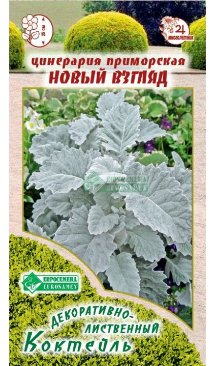Цинерария – это многолетнее растение, относящееся к семейству Астровые, культивируемое как однолетнее. Название растения в переводе с латинского означает пепельная, оно дано растению за характерный окрас ажурных листьев. В дикой природе оно встречается в тропиках Африки и на территории острова Мадагаскар. Сегодня цинерария насчитывает более 50 видов, многие разновидности успешно используются в домашнем цветоводстве, а также в качестве декоративных садовых и парковых растений. Лист ее небольшой, с нижней стороны имеет войлочное и плотное опушение серебристого оттенка, от этого весь кустик приобретает беловато-серебристый цвет. Цинерария Новый Взгляд прекрасно смотрится не только в качестве бордюрного растения. Ее можно сажать на первой линии цветника, обрамлять декоративные объекты и тропинки. Это изящное невысокое растение часто встречается как элемент общей композиции в альпийских горках, около искусственных водоемов.