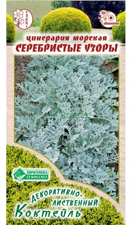 Цинерария приморская семейства Астровые (она же морская, она же крестовник приморский)– красивое серебристое растение, замечательно подходящее для декорации различных цветников. Необычный внешний вид растения, его неприхотливость и суровое очарование делают приморскую цинерарию любимой многими садоводами и дизайнерами. Её изящные кустики с резными серебристо-белыми листьями кажутся припорошенными инеем. Серебристые Узоры - ценный сорт декоративно-лиственного структурного растения с красивым, гармоничным невысоким кустиком, декоративным с момента высадки и до поздних заморозков. Применяется в ландшафтном дизайне при декорировании садовых участков, рокариев, клумб, альпийских горок или бордюров. Подходит как для групповых, так и одиночных посадок. Прекрасный сорт для ковровых цветников, великолепно подходит для композиций в контейнерах и садовых вазах.