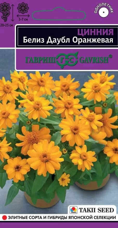 Декоративность цинний серии Belize Zinnia японской компании Takii поможет создать необычайно живописные цветочные композиции на клумбах, рокариях, на альпийских горках, они отлично подходят для высадки в горшки, контейнеры, в подвесные кашпо. Растение высотой 20-25 см, образует компактный, сильно ветвящийся кустик, шарообразной формы. Многочисленные оранжевые, махровые и полумахровые цветки диаметром 5-7 см почти полностью покрывают весь объем растения. Цветение обильное и продолжительное до заморозков. Циннии светолюбивы и теплолюбивы не переносят заморозков. Выращивают рассадным способом. Посев производят в апреле. Всходы появляются через 4-6 дней. В грунт рассаду высаживают в начале июня, по схеме 20х20 см. Цветение — через 50-60 дней после всходов.