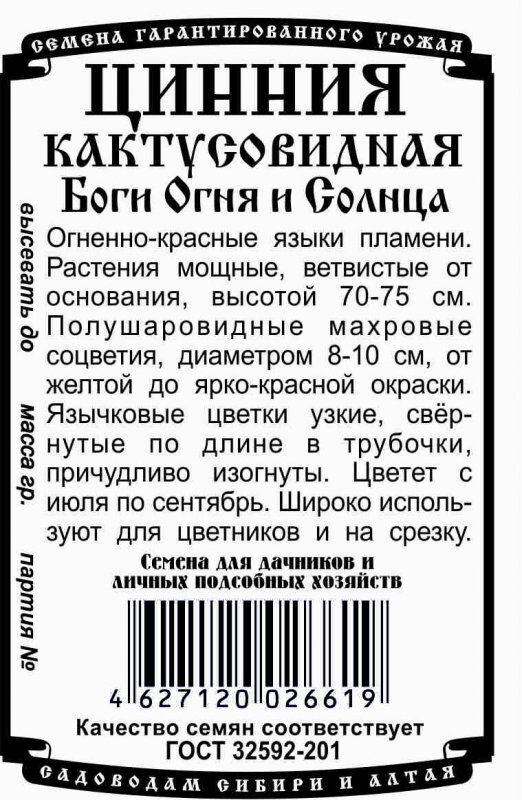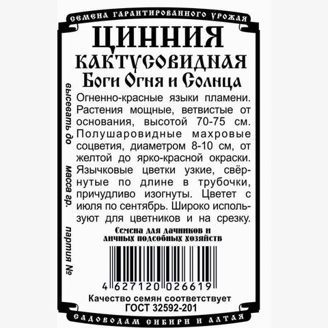 Цинния Боги Огня и Солнца 0,2 гр Б/П/ Деметра