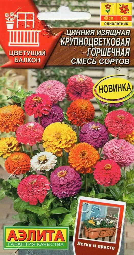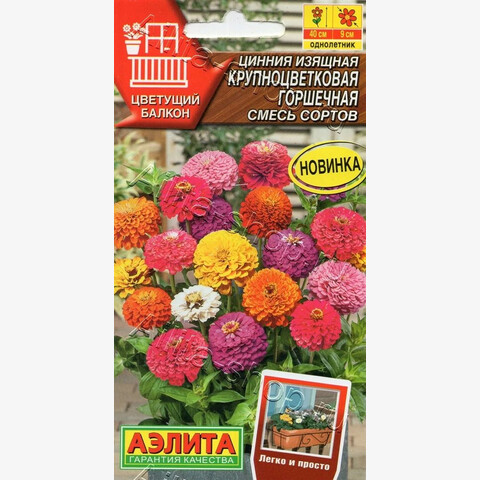 Низкорослая смесь для выращивания в контейнерах на балконе с солнечной стороны дома. Растения сильноветвистые, высотой 30-40 см, с большим количеством цветоносов. Цветки густомахровые, 8-9 см, в изобилии покрывают кустики с июня до заморозков. Каждое соцветие сохраняет декоративность 25-35 дней. В конце сезона растения можно занести в дом, где они продолжат цвести еще не одну неделю. Расстояние между растениями в балконных ящиках 15-20 см. Циннии – растения теплолюбивые, быстрорастущие, относительно засухоустойчивые. Предпочитают солнечные участки с дренированными почвами среднего плодородия, нейтральной кислотности. В южных регионах возможен безрассадный способ выращивания.