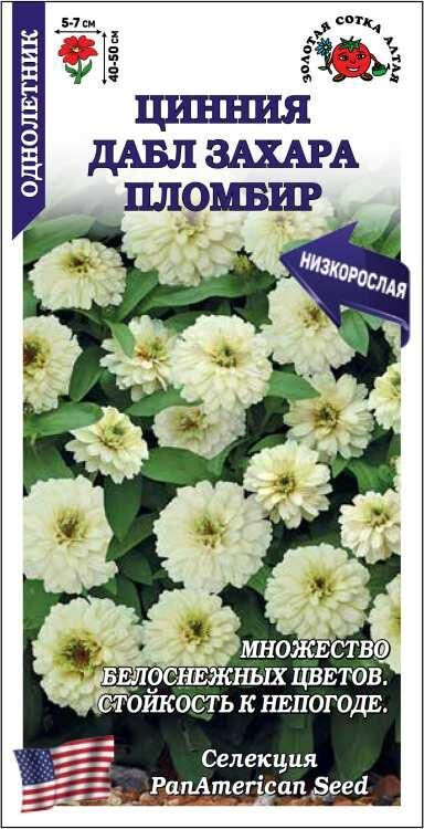 Выразительная низкорослая цинния с чрезвычайно долгим цветением. Пышные кустики с большим количеством крепких цветоносов утопают в невероятном множестве белоснежных махровых цветочков. Циннии Double Zahara невосприимчивы к болезням и устойчивы к непогоде, не выгорают и не блекнут от палящего солнца. Используются для украшения различных цветников, высаживаются в вазоны и кашпо.