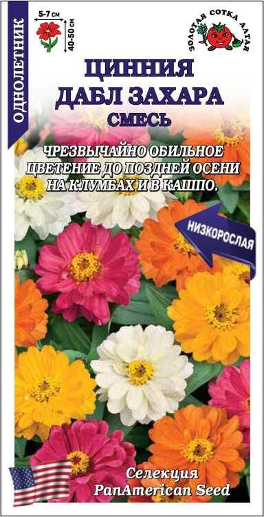 Циннии Double Zahara невосприимчивы к болезням и устойчивы к непогоде, не выгорают и не блекнут от палящего солнца, чрезвычайно обильно цветут, долго сохраняя декоративность. Кустики объёмные, крепкие, с большим количеством цветоносов и яркими махровыми соцветиями вишневой, лососевой, желтой, оранжево-красной и белой окраски. Используют для украшения цветников и контейнеров.