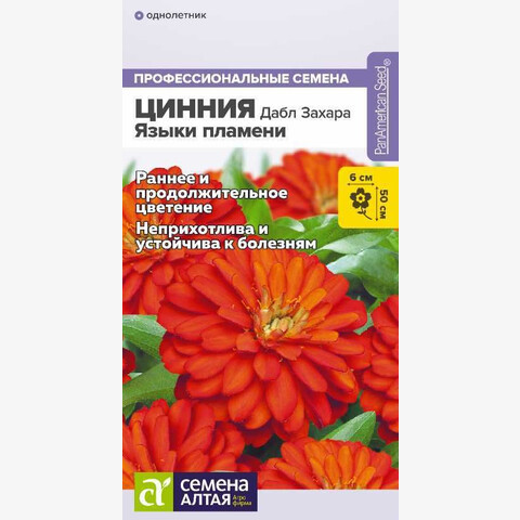 Крайне неприхотливая, засухоустойчивая и выносливая цинния, формирующая небольшие хорошо ветвящиеся кустики. Характеризуется очень длительным цветением, высокой устойчивостью к заболеваниям и неблагоприятным погодным факторам. Наибольшей декоративности достигает в прохладную солнечную погоду. Цветки махровые, насыщенного красно-оранжевого цвета, долго сохраняют декоративность. Отлично подойдут для клумб, контейнерных посадок и цветочных композиций. Высота растения: 40-50 см Ширина куста: 40-50 см Диаметр цветка: 5-6 см Условия выращивания, место посадки: солнечные участки, защищенные от ветра Требования к грунту: питательный легкий грунт с нейтральной реакцией среды Способы выращивания: рассадный, безрассадный Время посева на рассаду: март-апрель Время посева в грунт: апрель-май Способ посева: семена высевают на уплотненное ложе увлажненного грунта, заделывая на глубину 0,3-0,6 см. Увлажняют из опрыскивателя. Емкость накрывают прозрачной крышкой или пленкой до появления первых всходов, периодически проветривают. При раннем посеве на рассаду обеспечивают досветку 8-10 часов и температуру 22-25°С. Время до появления всходов: 3-7 дней Перевалка: при появлении 1-2 пар настоящих листьев, через 2-3 недели от появления всходов. Объем индивидуальных емкостей при доращивании не менее 0,5 л Время высадки в открытый грунт: апрель-май, около 8-9 недели от появления всходов Посадочное расстояние: 20-25 см Период цветения: май-сентябрь Уход: первую подкормку комплексным минеральным удобрением проводят через 5 дней после перевалки в отдельные емкости. Далее – 1 раз в 14-20 дней. Рекомендуется удалять увядшие соцветия. При проведении периодических обработок регуляторами роста формирует компактные кустики, но цветение при этом становится менее махровым. Внимание! Семена коатированные, оболочку не разрушать, она растворяется при поливе!