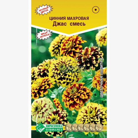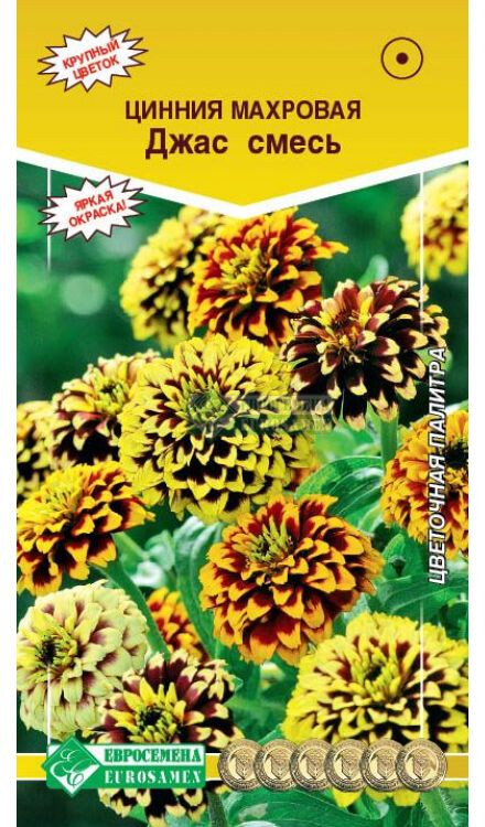 Цинния — цветок из Южной Мексики, который очень популярен среди садоводов и ландшафтных дизайнеров. В середине XVIII века это декоративное растение украшало аристократические сады, а в наше время благодаря своей красоте и неприхотливости завоевало уже весь мир. Циннии ещё называют майорами георгино- цветковыми, так как внешне они очень похожи на георгин, а цветами офицеров их прозвали за прямые жёсткие стебли и горделиво посаженные соцветия. Такой роскошный наряд – исключительная привилегия циннии Джас. Увидев однажды эффектное цветение, Вы не сразу освободитесь от ее чар. Восхитительно крупные цветки элегантно возвышаются над раскидистым кустом и демонстрируют свой роскошный пестрый наряд в течение всего сезона, словно исполняют зажигательный танец. Это прекрасное растение станет настоящей жемчужиной Вашего сада. Блестяще справится с ролью акцента в любых садовых ансамблях, балконных ящиках или вазонах и станет настоящей изюминкой в букетах и в композициях. Циннии теплолюбивые, засухоустойчивые, предпочитают солнечные места, хорошо переносят воздействие дождя и ветра. Высота растения-45 см Диаметр цветка-10 см