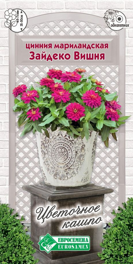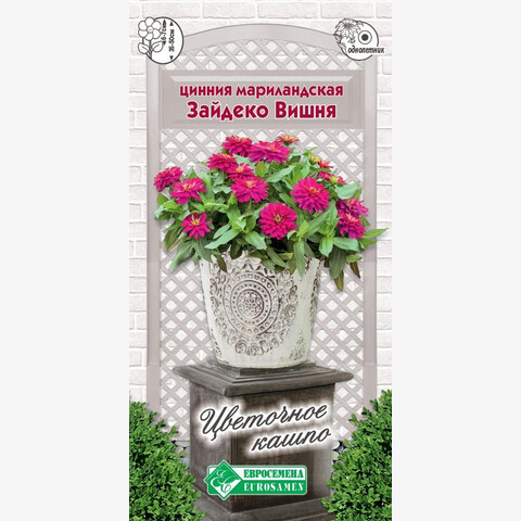 Цинния – красиво цветущее растение, образующее отдельный род семейства Астровые, получившее свое название по фамилии немецкого фармацевта Иоганна Цинна, он привез его из Мексики и впервые составил гербарий из него. До середины ХХ столетия майоры были символом Индианы – одного из американских штатов. В настоящее же время ее выращивают на всех материках. Цинния, пожалуй, самая популярная культура среди садоводов любителей. Зайдеко - шикарная, махровая цинния, пригодная для выращивания в помещениях, на балконах, во всех цветниках открытого грунта, но наиболее привлекательна она в вазонах, контейнерах и напольных вазонах. Она формирует многочисленные цветы вишневых, белых, желтых и красных окрасок. Вишня- яркая цинния серии Зайдеко, цветки которой сверкают вишневыми насыщенным цветом, покоряя всех вокруг своим цветением, великолепным внешним видом и невероятной декоративностью (полностью махровые цветки долго держатся на растении). Отличается высокой устойчивостью к заболеваниям и засухе, займет достойное место в самых изысканных композициях.