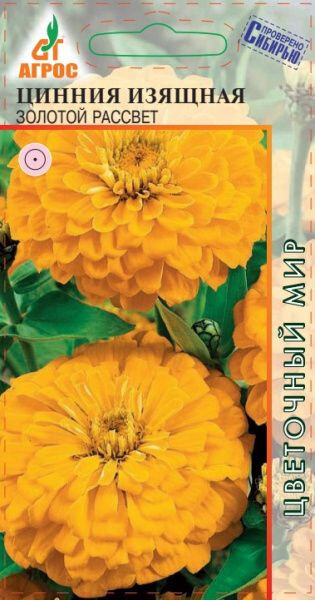 Однолетнее, быстрорастущее растение с прямостоячими стеблями. Стебли и листья имеют жесткое опушение. Соцветия-корзинки махровые, до 14 см в диаметре, золотисто-желтой окраски. Куст крепкий, с длинными цветоносами, цветы очень хороши для срезки. Теплолюбивое растение. Лучше всего растет на теплых, солнечных участках. Требует плодородной, легкой садовой почвы с нейтральной реакцией. Поливы нечастые, но обильные, при длительной засухе соцветия мельчают и теряют декоративность. Хорошо отзывается на подкормки минеральными удобрениями. Семена на рассаду высевают в конце марта-начале апреля. Оптимальная температура для всходов 18-20 °С, всходы через 7-14 дней. В грунт высаживают, когда минует угроза заморозков. Если рассада вытянулась ее можно заглубить. У циннии очень быстро образуются придаточные корни. Используется на клумбах в больших массивах, рабатках, в группах. 90 III-IV - V-VI 25x25 VI-IX