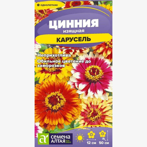 Изящное растение с оригинальной окраской цветков. Кусты крепкие с множеством цветоносов, несущих крупные, до 12 см в диаметре, георгиноцветковые соцветия яркой двухцветной окраски. Яркая смесь поможет создать цветовой акцент в Вашем цветнике, идеально подойдет для оформления клумб, рабаток, в срезке долго сохраняет декоративность. Хорошо сочетается с астрами, хризантемами, бархатцами. Растение относительно засухоустойчиво, но требует регулярных поливов, чувствительно даже к легким заморозкам. Предпочитает солнечные, защищенные от ветра теплые участки с дренированной нейтральной, богатой гумусом и минеральными элементами почвой. Посевы на рассаду проводят с конца марта под стекло. Глубина заделки семян 0,5 см. При температуре +22…+25°С всходы появляются на 7-10 день. С развитием первой пары настоящих листочков сеянцы пикируют в отдельные горшочки. В фазе 5-6 листьев проводят формирующую прищипку. В открытый грунт на постоянное место рассаду высаживают в конце мая – начале июня, когда минует угроза заморозков. Схема посадки – 20х20 см. Возможен прямой посев семян в открытый грунт в мае. Продолжительность цветения с июля до осенних холодов. Удаление увядших соцветий способствует более пышному и продолжительному цветению.