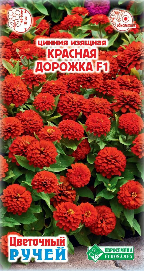 Цинния – красиво цветущее растение, образующее отдельный род семейства Астровые, получившее свое название по фамилии немецкого фармацевта Иоганна Цинна, он привез его из Мексики и впервые составил гербарий из него. До середины ХХ столетия майоры были символом Индианы – одного из американских штатов. В настоящее же время ее выращивают на всех материках. Цинния, пожалуй, самая популярная культура среди садоводов любителей. Красная Дорожка- карликовая цинния, пригодная для выращивания в помещениях, на балконах, во всех цветниках открытого грунта, но наиболее привлекательна она в вазонах, контейнерах и напольных вазонах. Компактные кустики формируют многочисленные цветы красного цвета. Красивые соцветия, состоящие из сгруппированных язычковых лепестков, охотно посещаются бабочками, они займут достойное место в самых изысканных композициях.
