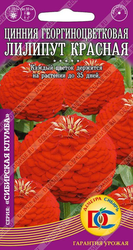 Прекрасный неприхотливый однолетник. Растения кустистые, крепкие хорошо облиственные, высотой не более 50 см. Соцветия георгиновидные, махровые, относительно крупные 7-10 см в диаметре, ярко-красной окраски. Начало цветения через 2,5 месяца после посева. Цветение продолжительное и обильное с середины июня до заморозков. Каждый цветок держится на растении до 35 дней. Используют в клумбах, рабатках, больших массивах и для срезки. Цветы долго стоят в воде, сохраняя яркость окраски.