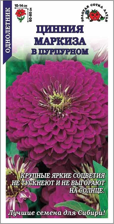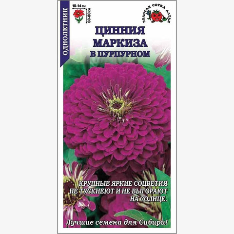 Великолепное растение с большим количеством крепких высоких цветоносов, не нуждающихся в подвязке. Крупные густомахровые соцветия красивого пурпурного цвета не выгорают на солнце и не тускнеют со временем. Цинния – идеальное растение для получения первоклассной срезки и создания ярких клумб. Цветет очень обильно и продолжительно.