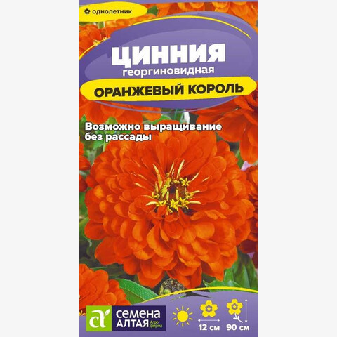 Эффектный однолетник. Редкая окраска и безупречные по форме соцветия. Мощный разветвленный куст высотой до 90 см, с множеством крупных (10-12 см в диаметре) георгиновидных соцветий яркой насыщенно-оранжевой окраски, состоящих из широких язычковых цветков, собранных в четкие круги. Создает в саду выразительный цветовой акцент. Используется для оформления цветников, рабаток, миксбордеров, долго сохраняет декоративность в срезке. Растение относительно засухоустойчиво, но требует регулярных поливов, чувствительно даже к легким заморозкам. Предпочитает солнечные, защищенные от ветра теплые участки с дренированной нейтральной, богатой гумусом и минеральными элементами почвой. Посевы на рассаду проводят с конца марта под стекло. Глубина заделки семян 0,5 см. При температуре +22…+25°С всходы появляются на 7-10 день. С развитием первой пары настоящих листочков сеянцы пикируют в отдельные горшочки. В фазе 5-6 листьев проводят формирующую прищипку. В открытый грунт на постоянное место рассаду высаживают в конце мая – начале июня, когда минует угроза заморозков. Посадочный интервал – 30-40 см. Возможен прямой посев семян в открытый грунт в мае. Продолжительность цветения с июля до осенних холодов. Удаление увядших соцветий способствует более пышному и продолжительному цветению.