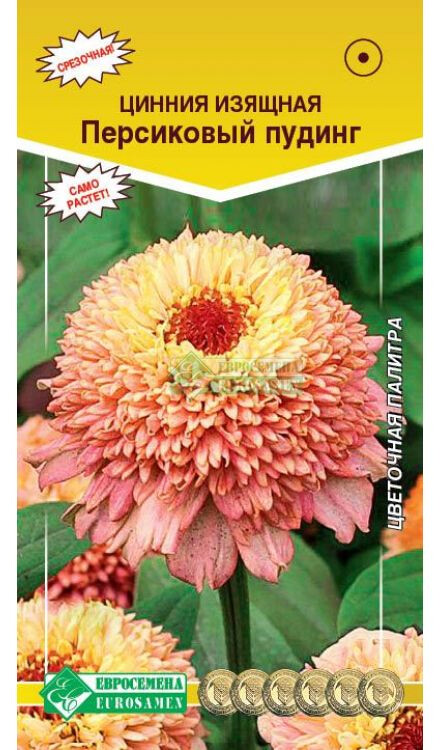 Zinnia elegans Cresto! Peaches & Cream Цинния изящная не сразу заняла свое место в ботанических садах и цветниках, она начала свое восхождение к славе с XVII века, и вскоре стала выращиваться уже на всех континентах. В США, например, цинния изящная считается национальным цветком. Сегодня это одно из любимых растений многих дачников. Объяснение очень простое — эффектный внешний вид и простота ухода, ее необычайная неприхотливость, стройность и красота соцветий. Яркие цветы издалека привлекают прохожих и награждают своих владельцев массой положительных отзывов. Цинния ПЕРСИКОВЫЙ ПУДИНГ отличается прямостоячими стеблями, которым не страшен ни ветер, ни зной, ни засуха. Ее мощные цветоносы на верхушке утолщаются и заканчиваются красивыми соцветиями-корзинками кремово-персикового цвета необычной формы. В пору цветения она представляет собой очаровательное зрелище - множество соцветий, напоминающих вкусный десерт из персика и сливок! Высота растения-75 см Диаметр цветка-10 см