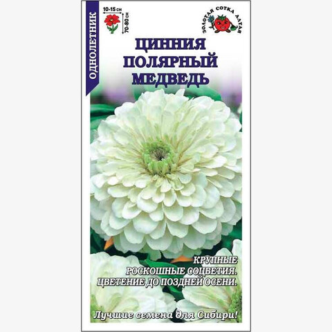 Очень красивое растение с крепкими прямостоячими цветоносами, не требующими подвязки, привлекает внимание роскошными махровыми соцветиями белоснежной окраски. Цинния великолепно подходит для оформления клумб, рабаток и высоких бордюров, прекрасный материал для букетов. Цветет очень обильно до самого снега.