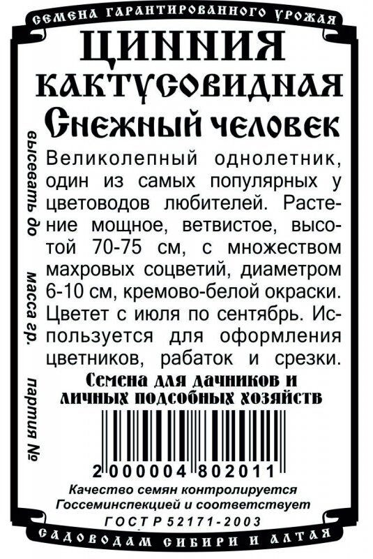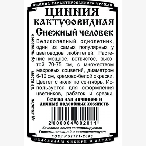 Цинния Снежный человек 0,3гр Б/П/ Деметра