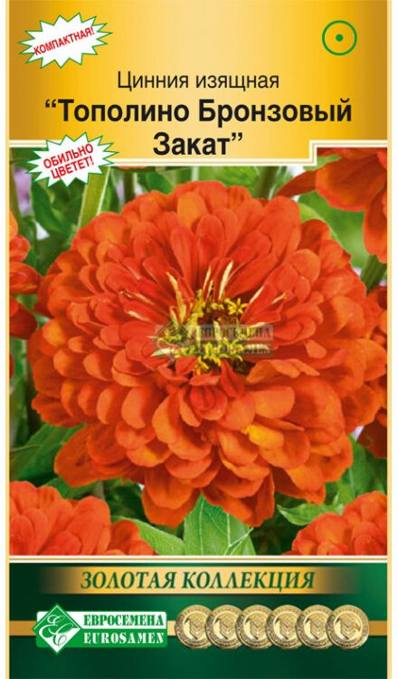 Эта цинния по декоративным качествам приближается к гибридам в первом поколении – растения в массиве впечатляют высочайшей однородностью и выравненностью. Компактные кусты прекрасно сочетаются с обильным цветением, кустики буквально усыпаны крупными густомахровыми соцветиями красивого бронзового цвета. Цветки по форме напоминают шаровидные георгины, каждый цветок держится на кусте до месяца. Сорт идеально подходит для горшечного выращивания. В цветниках будет незаменим в низком бордюре, на передних планах миксбордеров, в ковровых посадках на больших участках. Она заслуживает того, чтобы Вы обратили на нее свое внимание. Цинния хорошо сочетается с ноготками, бархатцами, мелкоцветковыми хризантемами, вербеной.