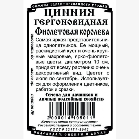 Самая яркая представительница однолетников. Ее мощный, раскидистый куст и очень крупные махровые ярко-фиолетовые цветы, диаметром до 10 см, придают всему растению очень декоративный вид. Цветет с июля по сентябрь. Используют для оформления цветников, рабаток и срезки. Семена высевают на рассаду в апреле, на глубину 0,5 см. Сеянцы пикируют в фазе 2-3 настоящих листьев. В открытый грунт рассаду высаживают в начале июня, на расстояние 30-35 см.