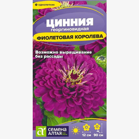 Эффектный однолетник! Редкая окраска и безупречные по форме соцветия. Растение формирует мощный разветвленный куст высотой до 90 см, с множеством крупных, 10-12 см в диаметре, георгиновидных соцветий насыщенной лавандово-фиолетовой окраски, состоящих из широких язычковых цветков, собранных в четкие круги. Используют для создания ярких акцентов в цветочных садовых композициях, оформления клумб и миксбордеров. Ввиду высокорослости, рекомендуется размещать на заднем плане цветников. Великолепно смотрится и долго сохраняет декоративность в срезке. Растение относительно засухоустойчиво, но требует регулярных поливов, чувствительно даже к легким заморозкам. Предпочитает солнечные, защищенные от ветра теплые участки с дренированной нейтральной, богатой гумусом и минеральными элементами почвой. Посевы на рассаду проводят с конца марта под стекло. Глубина заделки семян 0,5 см. При температуре +22…+25°С всходы появляются на 7-10 день. С развитием первой пары настоящих листочков сеянцы пикируют в отдельные горшочки. В фазе 5-6 листьев проводят формирующую прищипку. В открытый грунт на постоянное место рассаду высаживают в конце мая – начале июня, когда минует угроза заморозков. Посадочный интервал – 30-40 см. Возможен прямой посев семян в открытый грунт в мае. Продолжительность цветения с июля до осенних холодов. Удаление увядших соцветий способствует более пышному и продолжительному цветению.
