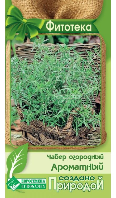 Чабер огородный – источник свежей зелени и кладезь полезных микроэлементов, эфирных масел и дубильных веществ. Настои и отвары из него широко используются в качестве лекарственного средства, его добавление в овощные и мясные блюда помогает ускорить лечение желудочно-кишечных заболеваний, головных болей, головокружения, ангины и простуды. Свежие и высушенные листочки чабера применяют и как пряность при приготовлении самых различных блюд. Это однолетняя полукустарниковая медоносная культура из семейства Яснотковые. Ароматный -среднеспелый сорт, от всходов до цветения 45-48 дней. Растение высотой до 50 см, массой 140 грамм. Цветок светло-фиолетового окраса, ароматичность сильная. Срезают растение в период массового цветения, при сушке ароматичность усиливается.