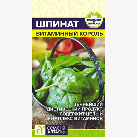 Среднеспелый (40-50 дней) сорт. Листья ярко-зеленые, кудрявые, сильнопузырчатые, овальные с волнистым краем, обладают нежным приятным вкусом. Сорт устойчив к цветушности. Шпинат – один из ценнейших диетических продуктов, богат минеральными солями, витаминами: В1, В2, Е, D, Р, PP, К, С, каротином, и другими полезными веществами, кроме того является безусловным чемпион по содержанию йода. Рекомендуется для потребления в свежем виде, консервирования и для замораживания. Место посадки: защищенные от ветра участки с плодородной хорошо дренированной почвой. Лучшие предшественники: огурцы, томаты, бобовые и кабачки Освещение: обильное, выносит затенение Предпосевная подготовка: не требуется, но для получения более ранних всходов можно замочить семена на 1 сутки в воде Сроки посева: в открытый грунт в апреле-августе Посев на рассаду: не предусмотрен Посев в грунт: после прогревания почвы до +10-12°С, можно высевать в несколько сроков с интервалом 2-3 недели для постоянного получения молодой зелени на участке. Готовят бороздки глубиной 1,5-2 см, оставляя междурядья 20-30 см, или сеют пучками. Грунт увлажняют, семена присыпают землей и слегка уплотняют субстрат, накрывают тонким укрывным материалом и очень обильно поливают теплой водой через укрывной материал (во избежание размывания почвы и семян). Всходы появляются в течение недели, они способны выдерживать кратковременные заморозки до -4-6°С. В фазе 2-4 листьев всходы прореживают на расстояние 20-25 см. Можно выращивать в качестве комнатного растения в контейнерной культуре Пикировка/перевалка: не предусмотрена Уход: заключается в поливе, подкормках, рыхлении посадок и своевременных прополках Сбор урожая: через 20-40 дней после посева, когда у растений уже сформируется розетка из пяти-шести листьев, а у некоторых даже появится небольшой стебель