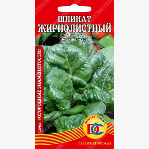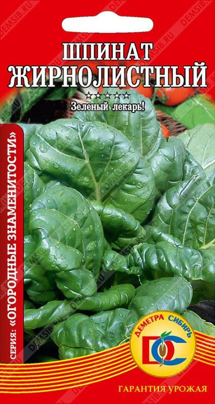 Уникальный продукт! Среднеспелый (28-31 день) сорт. Розетка компактная, полу приподнятая, диаметром до 28 см. Листья сочные, нежные, овальные, слабопузырчатые, зелёного цвета. Масса одного растения до 28 г. Шпинат обладает комплексом целебных свойств, таких как очищение желудка, нормализует функцию мышечной системы, способствует укреплению нервной системы, предупреждает рахит, является источником легко усвояемого железа. Рекомендуется для потребления в вареном и сыром виде и для заморозки.