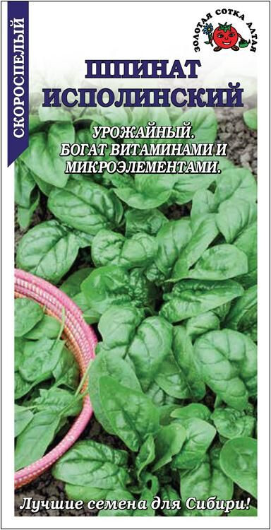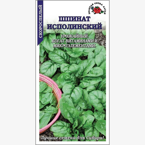 Скороспелый сорт со стабильной урожайностью. От всходов до хозяйственной годности 25-35 дней. Розетка листьев крупная, полуприподнятая. Листья овальные, слабопузырчатые, сочные и нежные, приятного вкуса. Масса одного растения 70-90 г. Шпинат содержит комплекс витаминов и минералов, фолиевую и щавелевую кислоты, клетчатку, антиоксиданты; богат белком, железом и йодом. Полезен для профилактики рахита.