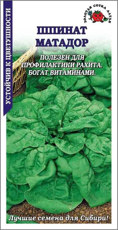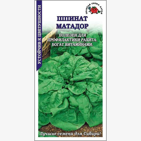 Сорт среднеспелый, устойчив к цветушности. От всходов до хозяйственной годности 40-50 дней. Розетка компактная, полуприподнятая, среднего размера. Лист гладкий, мясистый, средне-пузырчатый, овальный с волнистым краем. Шпинат содержит комплекс витаминов и минералов, фолиевую и щавелевую кислоты, клетчатку, антиоксиданты; богат белком, железом, йодом. Полезен для профилактики рахита. Рекомендуется для непосредственного потребления, переработки и заморозки.