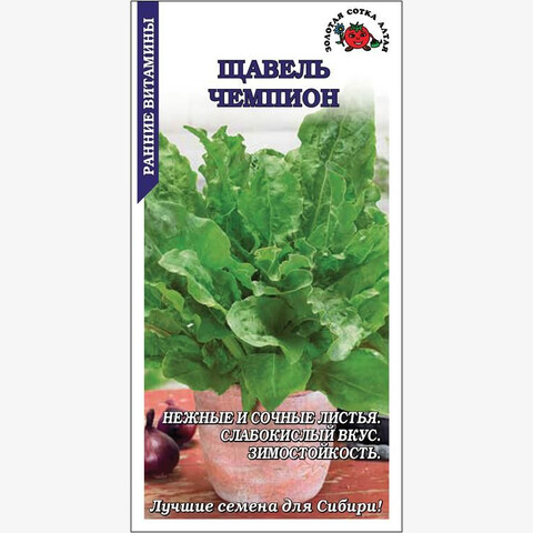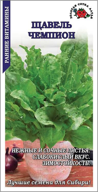 Среднеспелый (39-42 дня) зимостойкий сорт. Розетка листьев прямостоячая, диаметром 28-30 см и высотой 37-40 см. Лист крупный, зеленый, гладкий, удлиненно-овальной формы со слегка волнистым краем, нежный и сочный, приятного слабокислого вкуса. Щавель – источник витаминов, микроэлементов и органических кислот. Используется в салатах, супах, в качестве начинки к пирогам, заготавливается впрок.