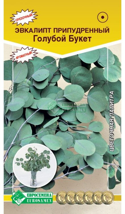 Эвкалипт появился в наших квартирах сравнительно недавно. Основная причина его популярности – фитонциды, вещества, уничтожающие болезнетворные микроорганизмы. В комнате, где растет эвкалипт, человеку дышится легче, его листья используют для приготовления настоев и отваров с целью лечения заболеваний верхних дыхательных путей. Благодаря необычной расцветке листьев и приятному аромату, зелень активно применяется в современной флористике, она позволяет придать приятный мягкий пастельный оттенок цветочной композиции, используется как в вертикальных букетах, так и в круглых. Его обычно сочетают с цветами в холодной палитре. Он роскошно смотрится с воздушной маттиолой и розами, становится еще более загадочным и привлекательным. Завораживающий букет, украшенный диковинным эвкалиптом, по достоинству будет оценен искушенными людьми, ценящими оригинальность во всем. Голубой Букет- отличный срезочный сорт с короткими междоузлиями и с маленькими серебристо-голубыми листочками, плотно охватывающими стебли.