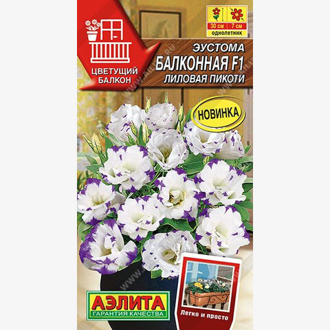 • Балконная эустома, с изумительными по красоте нежными цветками, в средней полосе чаще выращивается в качестве однолетника. Компактная, низкорослая, высотой 20-30 см, хорошо ветвится, не перерастает и не требует формирования. Цветение начинается со второй половины лета, когда распускаются крупные розовидные цветки диаметром 5-7 см. Эустома хорошо растет в горшках и балконных ящиках, прекрасно смотрится в садовых вазонах. Осенью у растений обрезают побеги на 2/3 длины и помещают в теплое и светлое помещение, где при создании оптимальных условий они зацветут повторно. Для выращивания одного растения требуется горшок диаметром 20 см.