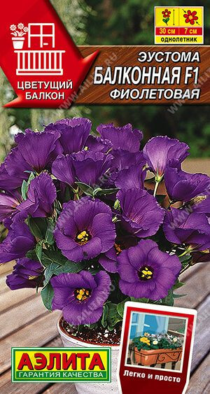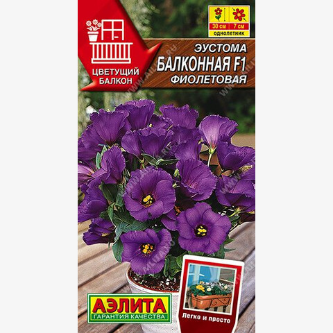 Балконная эустома, с изумительными по красоте нежными цветками, в средней полосе чаще выращивается в качестве однолетника. Компактная, низкорослая, высотой 20-30 см, хорошо ветвится, не перерастает и не требует формирования. Цветение начинается со второй половины лета, когда распускаются крупные розовидные цветки диаметром 5-7 см. Эустома хорошо растет в горшках и балконных ящиках, прекрасно смотрится в садовых вазонах. Осенью у растений обрезают побеги на 2/3 длины и помещают в теплое и светлое помещение, где при создании оптимальных условий они зацветут повторно. Для выращивания одного растения требуется горшок диаметром 20 см.