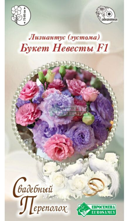 Эустома (лизиантус) вновь настойчиво привлекает массу поклонников. Сочетая нежность цветов розы, силу пышных листьев и слегка капризный характер, она имеет множество названий и известна среди цветоводов также под именем японской розы и техасского колокольчика. Это представитель травянистых растений, что в переводе с греческого означает красивые уста! Описанная еще в ХVIII веке, эустома крупноцветковая в результате активной работы селекционеров дала начало разнообразным сортам. Букет невесты- эустома для выращивания на срез, представительница серии Свадебный Переполох, привлекающая внимание окружающих крупным размером махрового цветка с бахромчатыми вьющимися лепестками, которая смотрится элегантно и способна создать классическую атмосферу вокруг себя. Очень популярное растение, как для сада, так и для дома, широко используемое для украшения различных мероприятий.