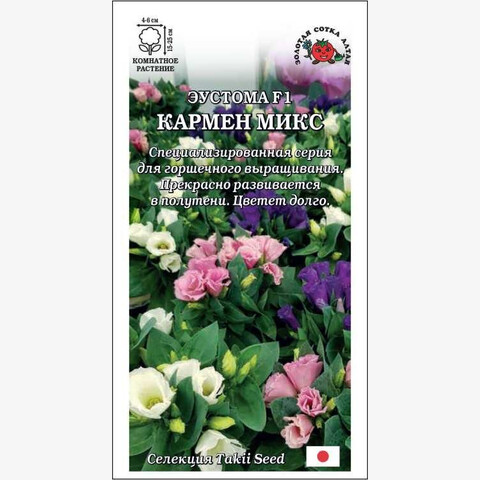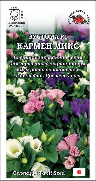 Эустомы серии Carmen выведены специально для выращивания в горшечной культуре, зацветают рано, цветут долго, отлично развиваются в полутени, в домашних условиях растут как многолетник. Кустик компактный, сильно ветвящийся, в период цветения весь покрыт большим количеством цветочков. В саду низкорослые эустомы используются в качестве однолетних растений для создания бордюров, клумб и рабаток.